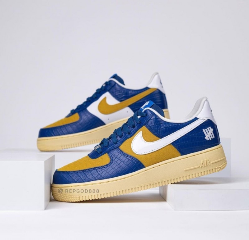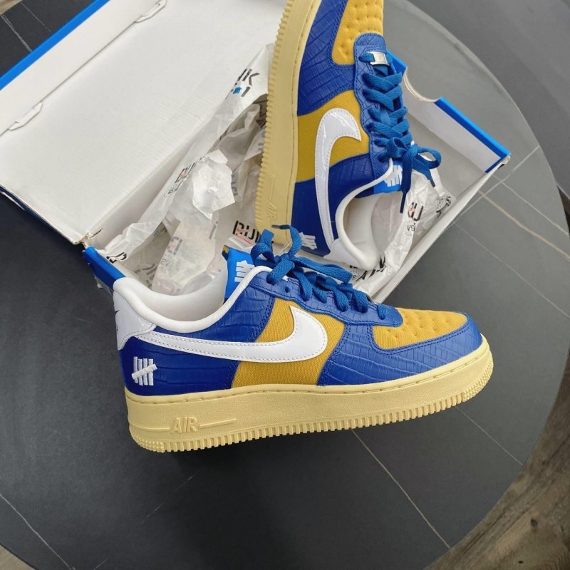 Airforce 1 low undefeated 5 on it blue yellow croc