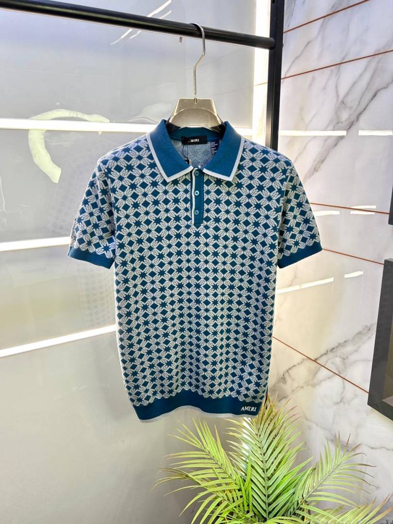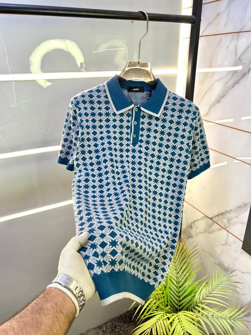Amir i Imported knitted Monogram Blue Super Premium Collar Neck Polo T-shirt F3480-BU