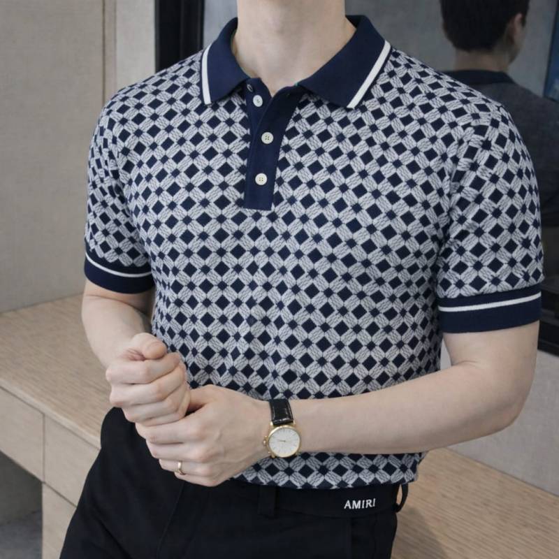 Amir i Imported knitted Monogram Super Premium Navy Collar Neck Polo T-shirt F3480-NY