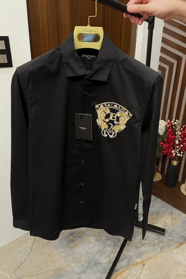 Balmai n Paris Embroidery Logo Black Premium Shirt With Brand Box Packing And Carry Bag F1453-BL