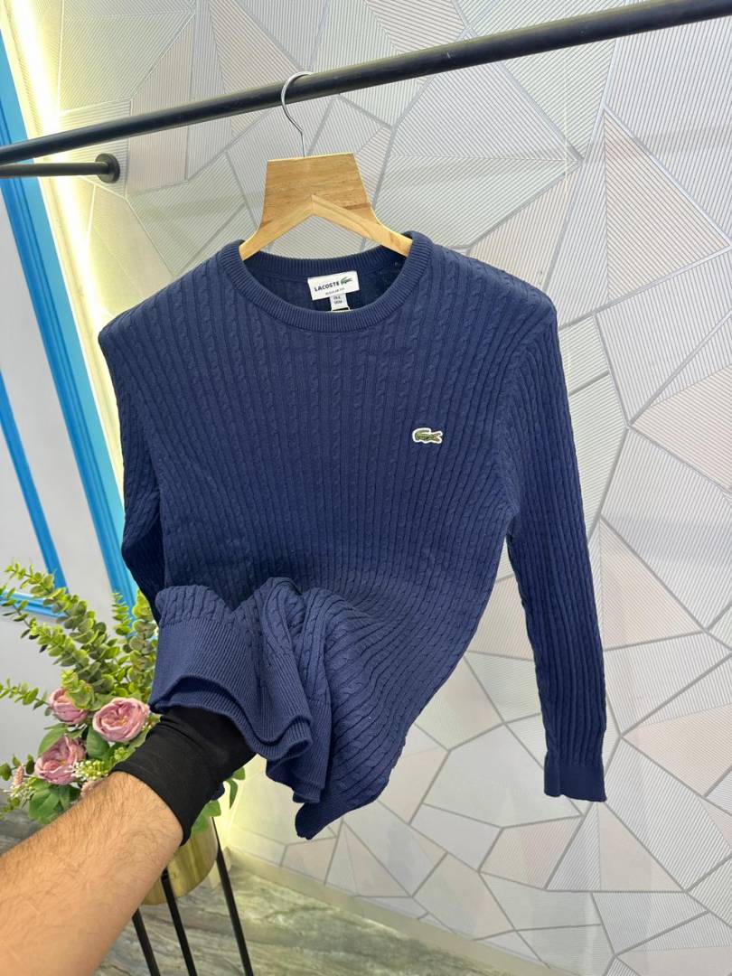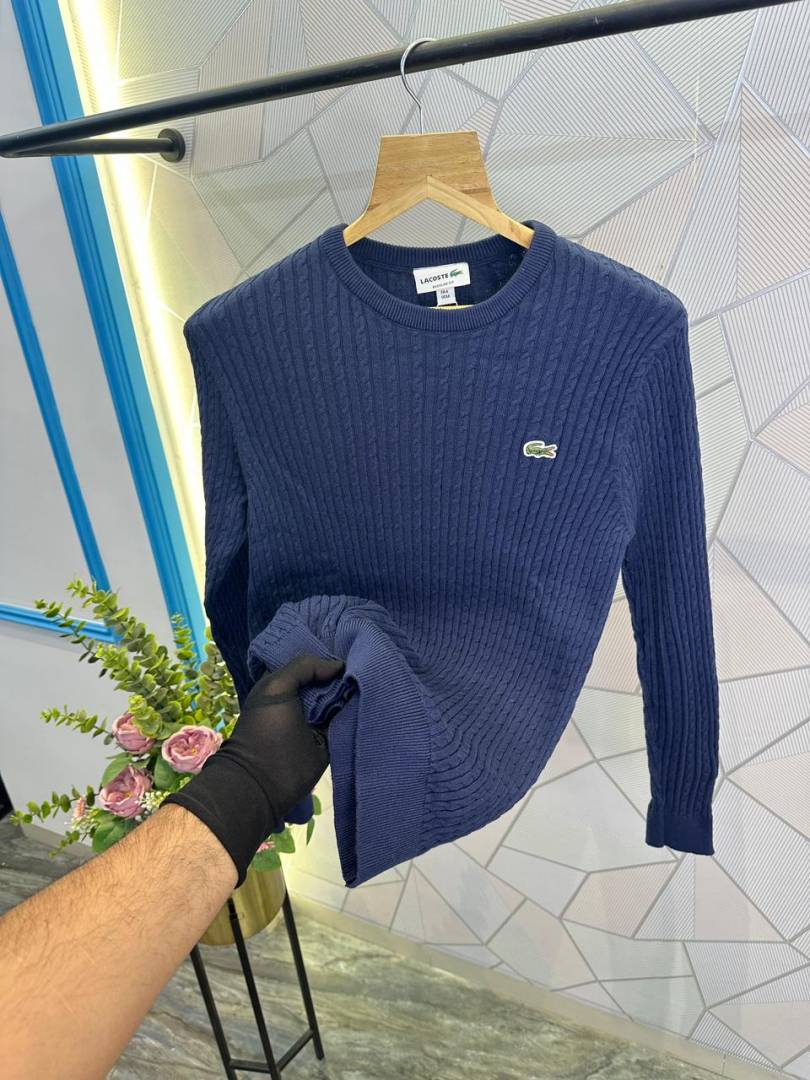 Lacost_E Cable Knite Cotton Sweater Blue Offical Article