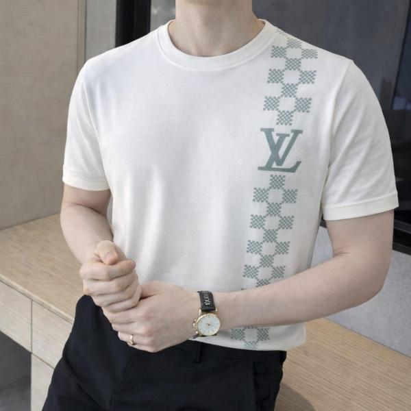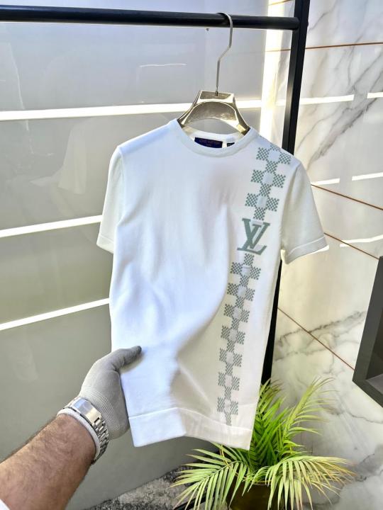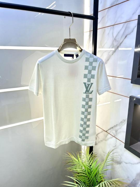Loui s Vuitton Imported White knitted Super Premium Round Neck T-shirt F3529-WH